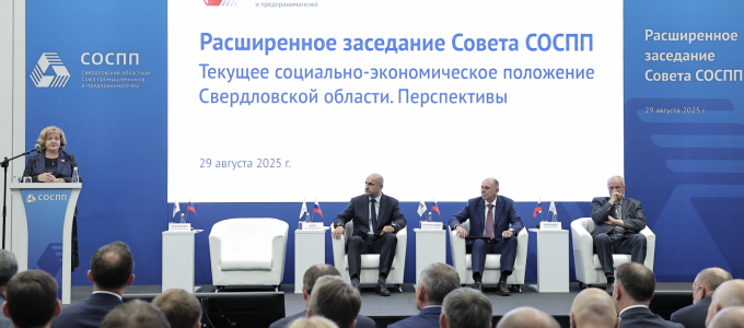 Полномочный представитель Президента Российской Федерации в Уральском федеральном округе Артём Жога и председатель Законодательного Собрания Свердловской области Людмила Бабушкина приняли участие в расширенном заседании Совета Свердловского областного Союза промышленников и предпринимателей, которое провёл президент СОСПП Дмитрий Пумпянский.