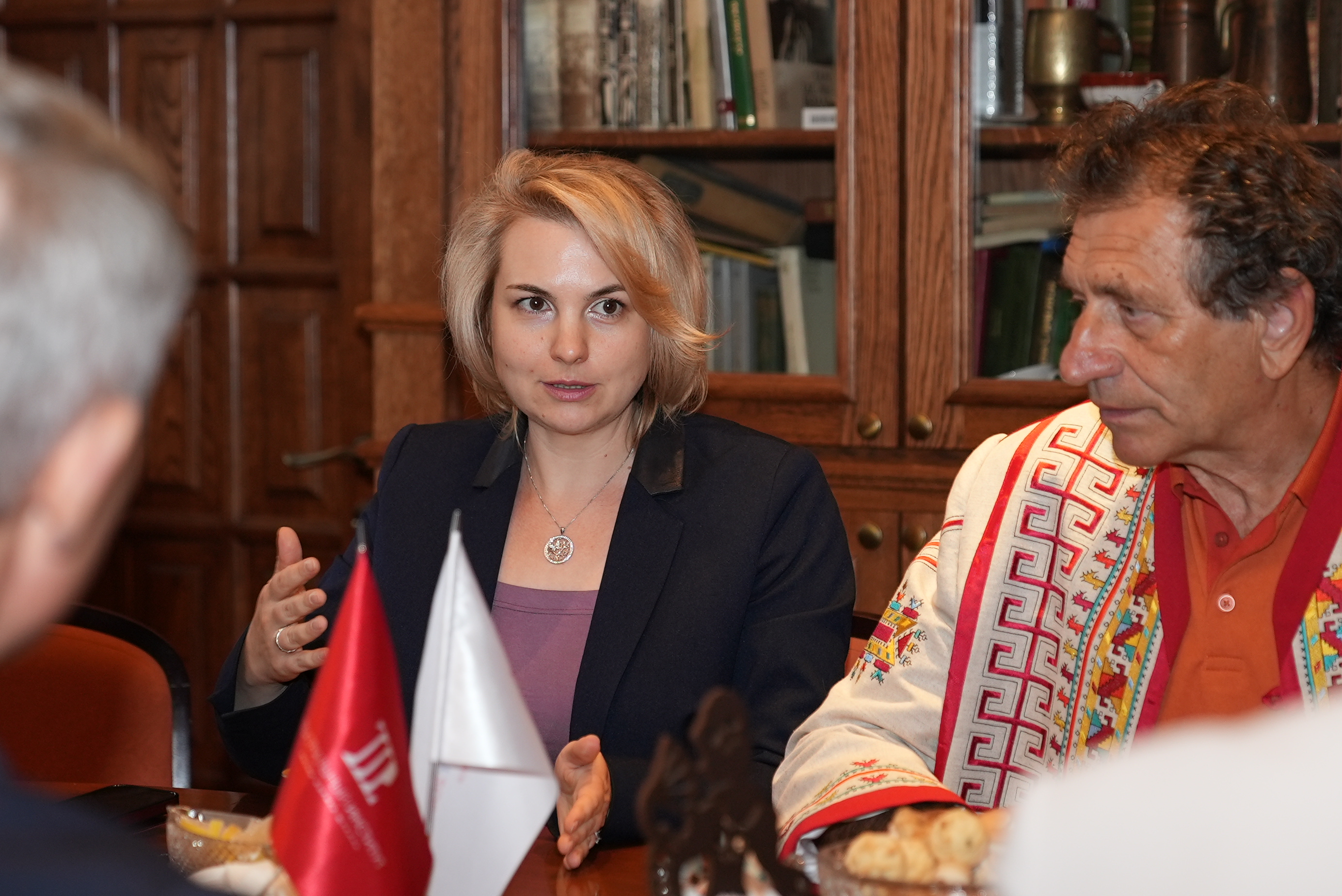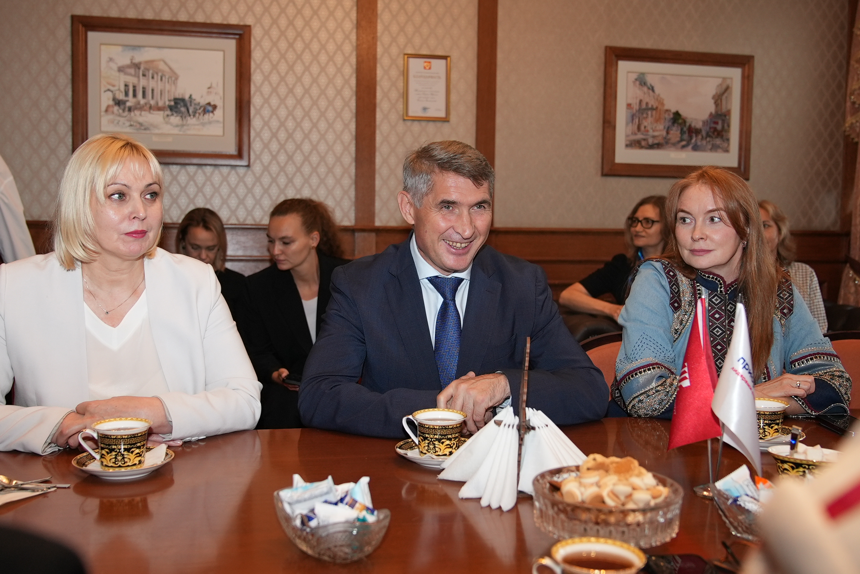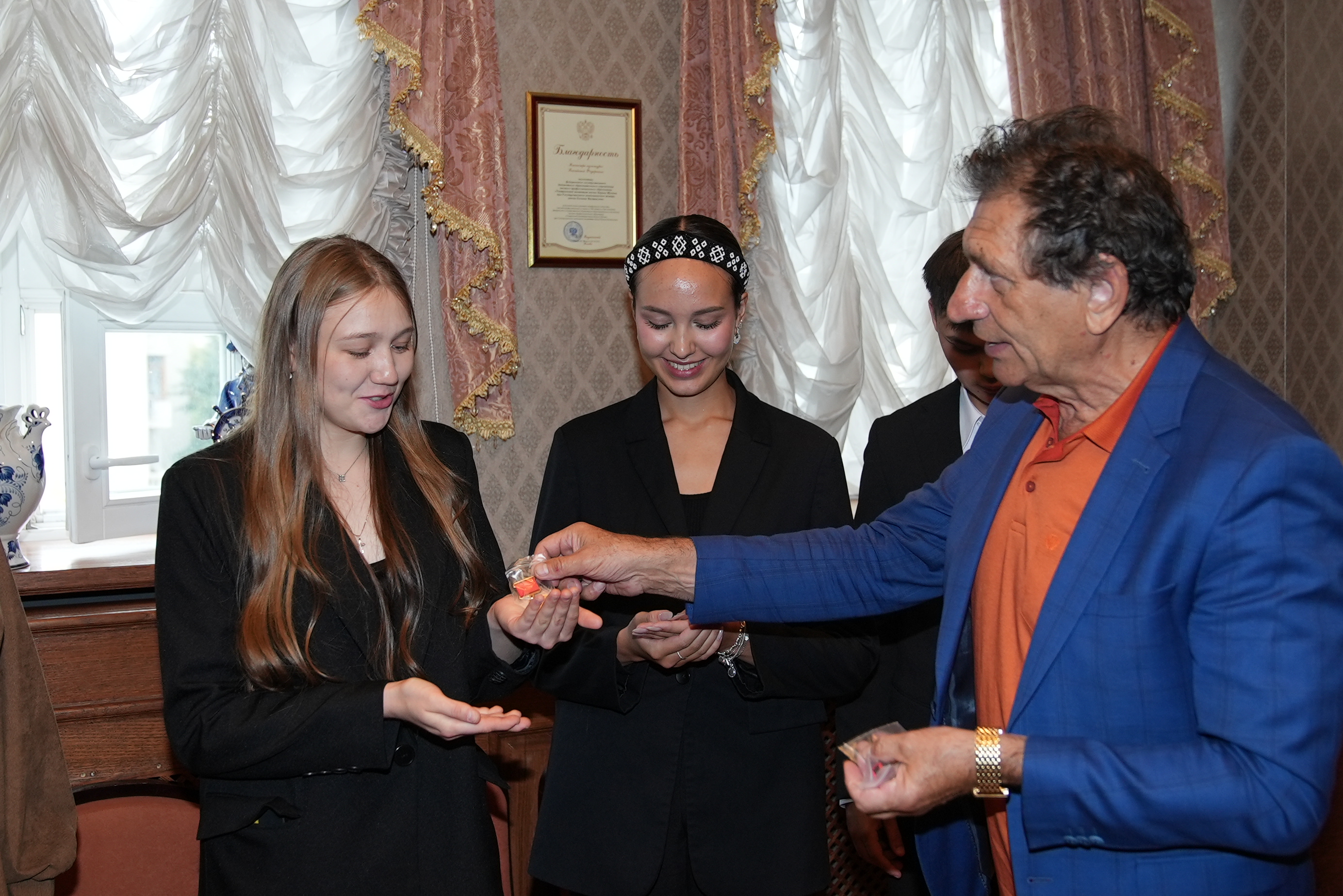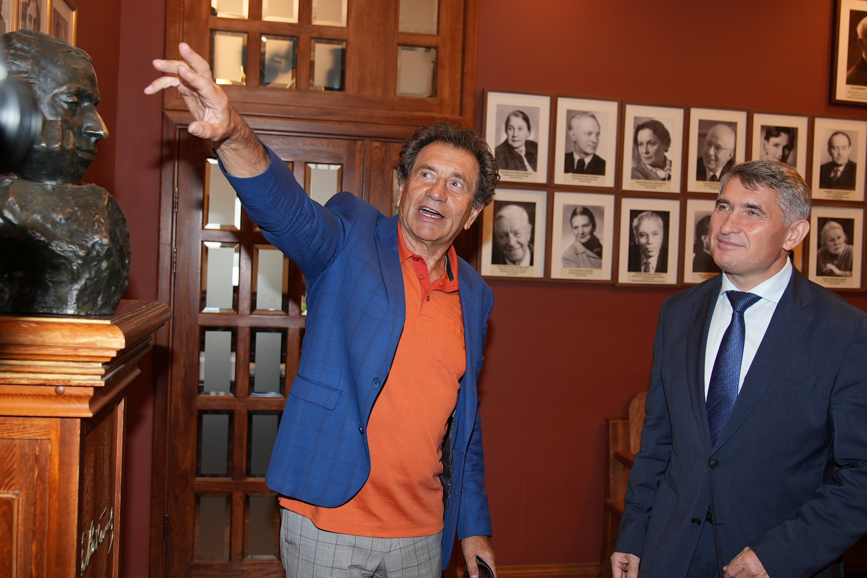 Тёплая атмосфера встречи подчеркнула значимость события: гости из Чувашии вручили ректору института Евгению Владимировичу Князеву национальный мужской костюм — шубр, а ректор в ответ подарил делегации двухтомник об истории Вахтанговской школы.