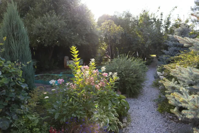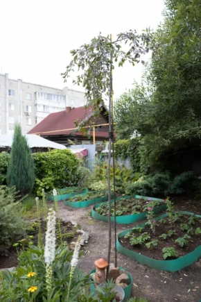 И вот мы проходим дальше, ступаем на землю, где вместо привычных грядок раскинулся настоящий оазис — дивный дендропарк, неожиданно расцветший на одной из старейших улиц Ревды!