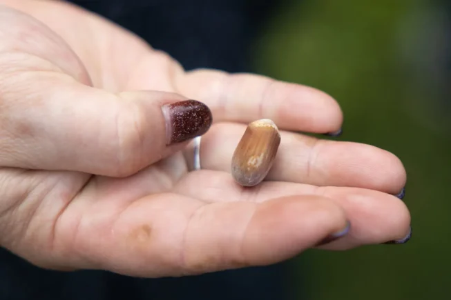Все очень просто — он подобрал их с земли там, где растут деревья-родители. Например, орехи маньчжурского ореха он насобирал в дендропарке Екатеринбурга, желуди нашел под дубом недалеко от института, а голубые ели вырастил из семян ревдинских голубых елей, которые растут около городской администрации.