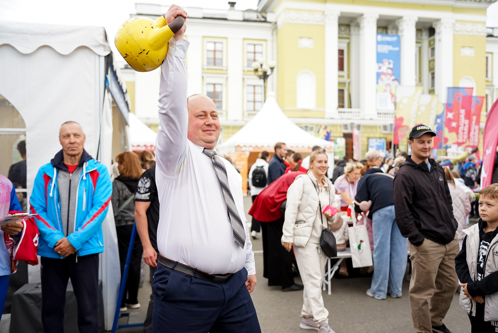 С азартом озерчане поднимали гири. Даже глава города Сергей Гергенрейдер не устоял и взялся за снаряд, выполнив 25 повторений. Рекорд в этом поставил 17-летний парень, выполнив 48 повторений.