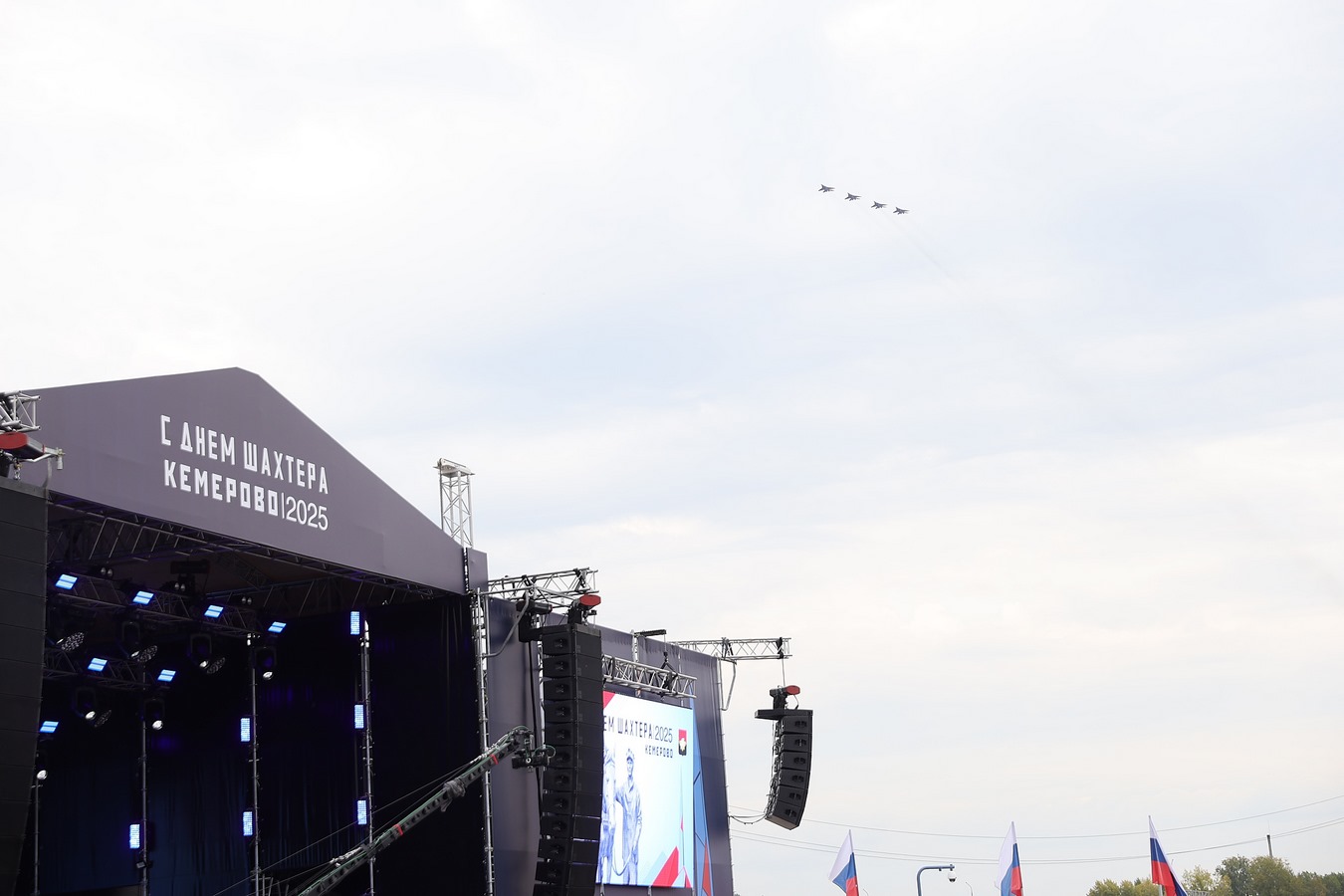 В честь Дня шахтера выступила легендарная авиационная группа «Стрижи» под руководством полковника Дениса Кузнецова из Юрги. Четверка летчиков продемонстрировала петлю Нестерова, тюльпан, косую петлю, групповую бочку и другие элементы. Каждая имеет практическое применение в реальном бою. С Днем шахтера кузбассовцев прямо из кабины истребителя поздравил Денис Кузнецов. Напомним, днем летчики показали высший пилотаж в Новокузнецке, а также приветствовали жителей городов Белово, Гурьевск, Салаир, Киселевск и Прокопьевск.