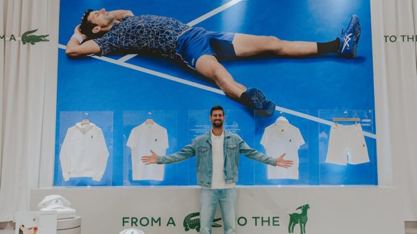 Перед тем, как вступить в отчаянную борьбу за 25-й «Шлем», Новак Джокович появился перед светскими фотографами на Пятой авеню в Нью-Йорке. Там, во флагманском магазине Lacoste, презентовали лимитированную коллекцию бренда, в которой «переосмыслили свой культовый логотип в честь величайшего теннисиста всех времен». Другими словами на пяти изделиях коллекции — поло, футболке, спортивной куртке, кепке и брюках — вместо традиционного крокодильчика появится козлик. Изображение козла уже давно в интернете заменило аббревиатуру G.O.A.T. (Greatest Of All Time — величайший на все времена), и пока Новак еще в строю, многолетний его экипировщик решил таким образом почтить его заслуги.