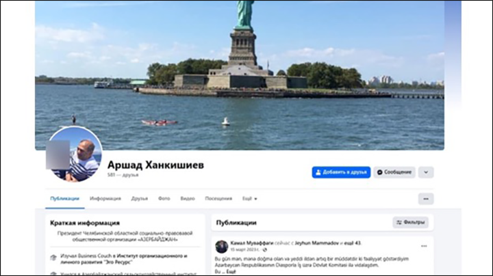 Речь идёт об Аршаде Ханкишиеве. Он был президентом ликвидированных по суду общественной организации "Азербайджан" и НКО "Региональная национально-культурная автономия азербайджанцев Челябинской области". Примечательно, что с русским паспортом ему пришлось попрощаться за поддержку Алексея Навального**. Взгляды свои он не скрывал и даже в качестве обложки на Facebook*** многозначительно установил фотографию с американской статуей Свободы.