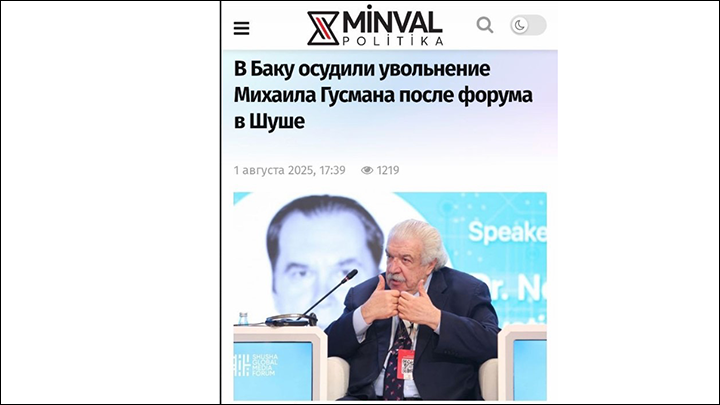Вместе с Марковым* проблемы начались и у другого статусного гостя медиафорума в Шуше. Михаил Гусман ушёл с поста первого замглавы ТАСС после 30 лет работы в информационном агентстве. Вместо того чтобы в Шуше задать вопрос Алиеву, например, почему так по-хамски вышвырнули вон "Русский дом" из столицы Азербайджана или правда ли, что Баку намерен поставлять оружие Киеву, Гусман заявил:
