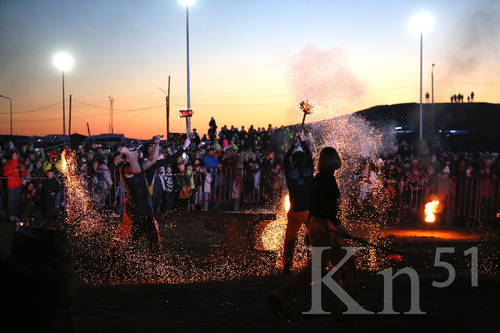 После выступления хэдлайнеров зрителей ждал еще один впечатляющий сюрприз — индустриальное шоу «Арктический сплав». Оно действительно стало горячим сплавом хореографии, музыки, технического, огненного и пиротехнического шоу (видео смотрите в наших соцсетях). А создавало это невероятное действо содружество творческих коллективов из Санкт-Петербурга и Мурманска.