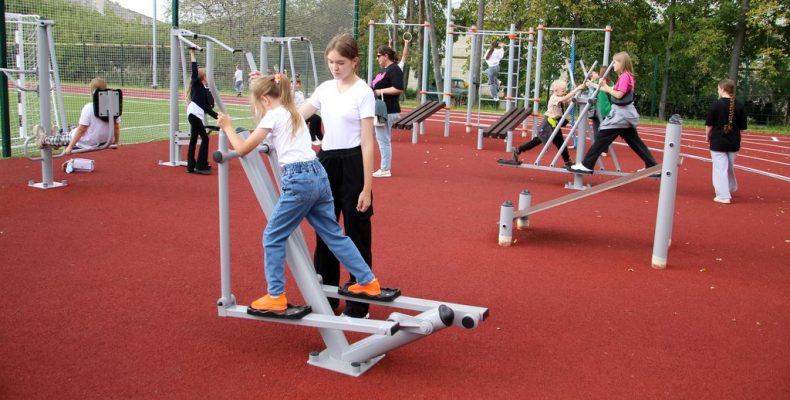 На фото. Стадион оборудован отдельной площадкой для занятия уличной гимнастикой.
