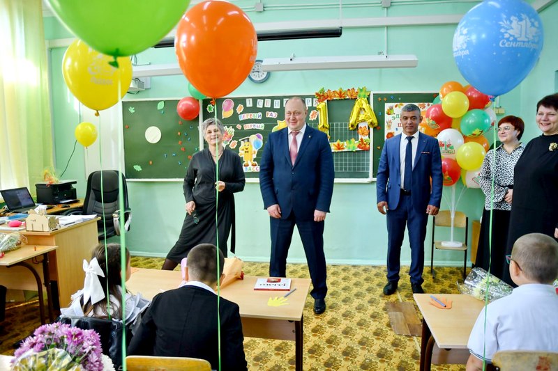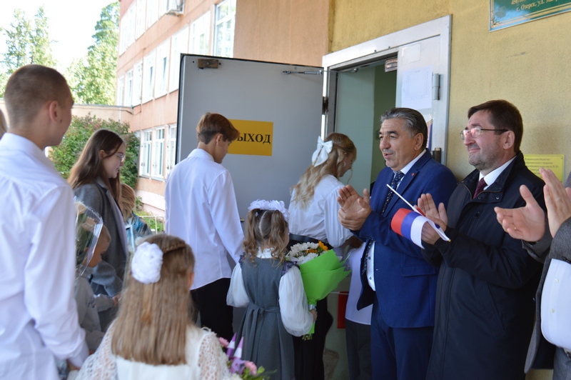 Сегодня, в День знаний, Сергей Гергенрейдер приехал в школу №35 вместе с начальником озерской ветеринарной станции Русланом Макиным, чтобывысказать теплые пожелания учащимся и педагогам: