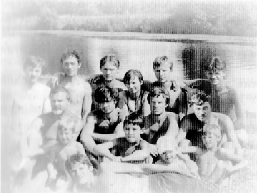Их, далеко не в полном составе дети: нижний ряд, слева на право: от Евгения Сергей и крайний справа Григорий. В середине ряда: первый с лева Евгений от Юрия, правее Сергей от Александра, на переднем плане Дмитрий, сын единственной сестры девяти братьев, Зои.