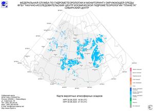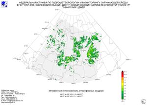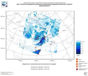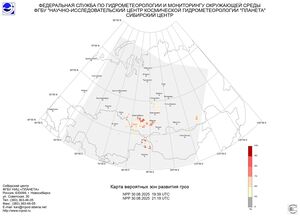 Облачные поля циклона, достигшие к утру 31 августа территории Новосибирской области, заметно уплотнятся, обеспечивая и здесь рост интенсивности осадков. Днем по области местами пройдут кратковременные дожди, ожидаются грозы. Грозовая деятельность принесет сильные дожди, ливни. Не менее контрастные условия погоды с грозами и сильными ливнями днем ожидаются в Томской, а также в Кемеровской областях. По данным дистанционного зондирования, высота кучево-дождевой облачности в утренние часы достигала 10-13 км.
