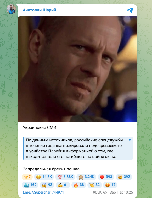 Так что резонансная, показательная расправа над Парубием явно нуждалась в медийном "антикризе". И никто не удивился, когда украинские спецслужбы начали продвигать тезис, что в деле нашёлся "русский след".