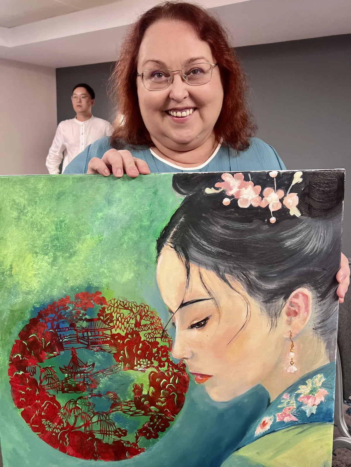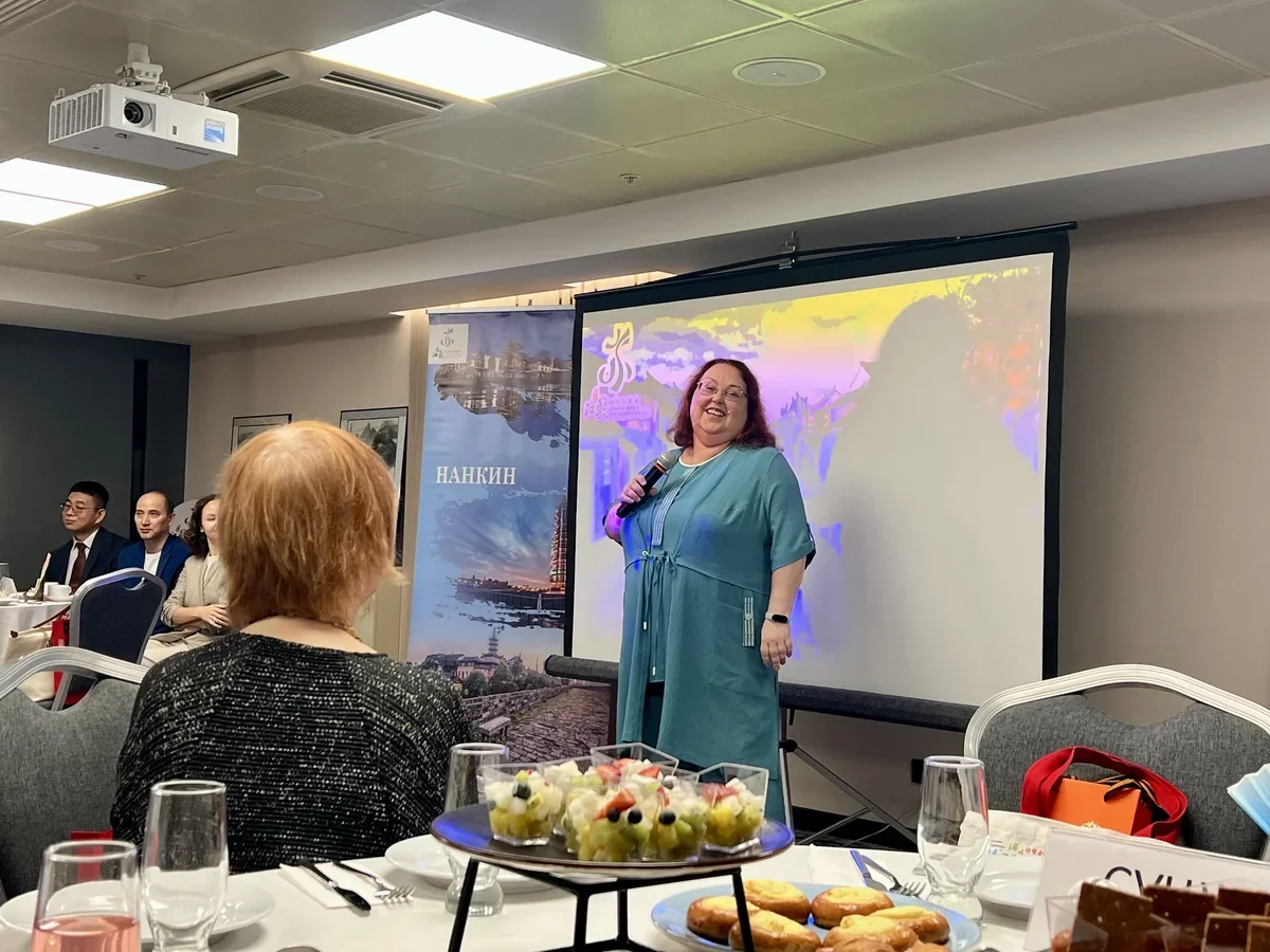 Цзянсу вдохновляет художников. Начальник отдела развития Национального Туристического офиса КНР в Москве Вера Утехина представила гостям свое новое творение. Фото: АТОР
