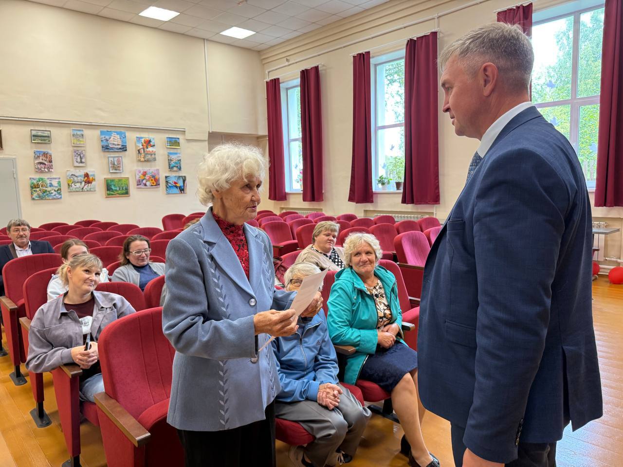 В Мякишах тоже есть хорошие результаты: в доме культуры заменили крышу, полы, сцену, оборудование, окна и кресла, работы провели по нацпроекту «Культура» и партийному проекту «Местный дом культуры». Роман Береснев встретился с местными жителями и поблагодарил их за помощь фронту.