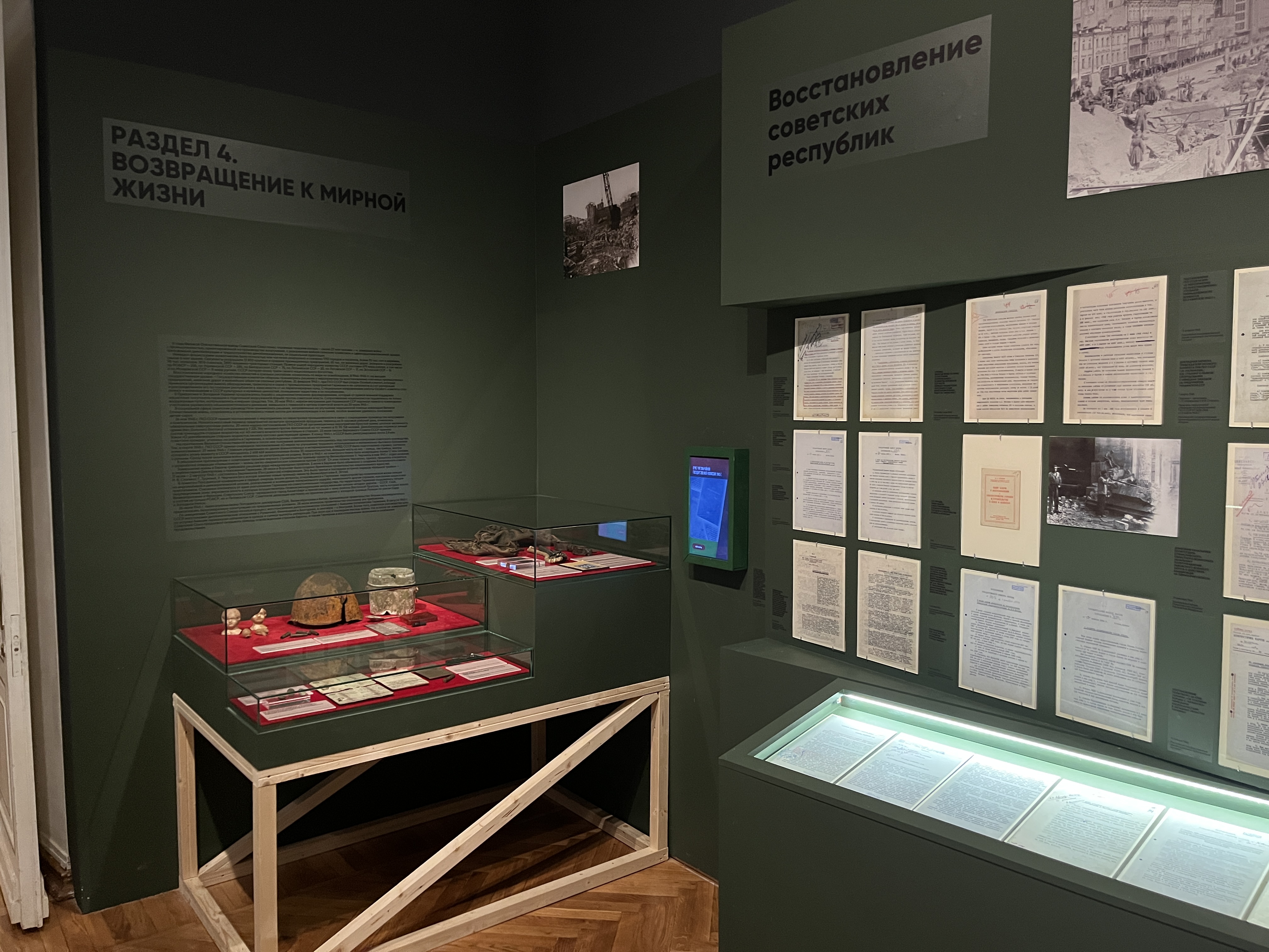«Здесь, в Выставочном зале федеральных архивов, представлено более 350 документов, фотографий, предметов. Они подробно рассказывают о ходе боевых действий в Европе и на Дальнем Востоке и о подвиге советских воинов, разгромивших гитлеровскую Германию, а затем нанёсших последний удар по японскому милитаризму.