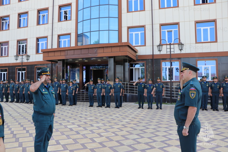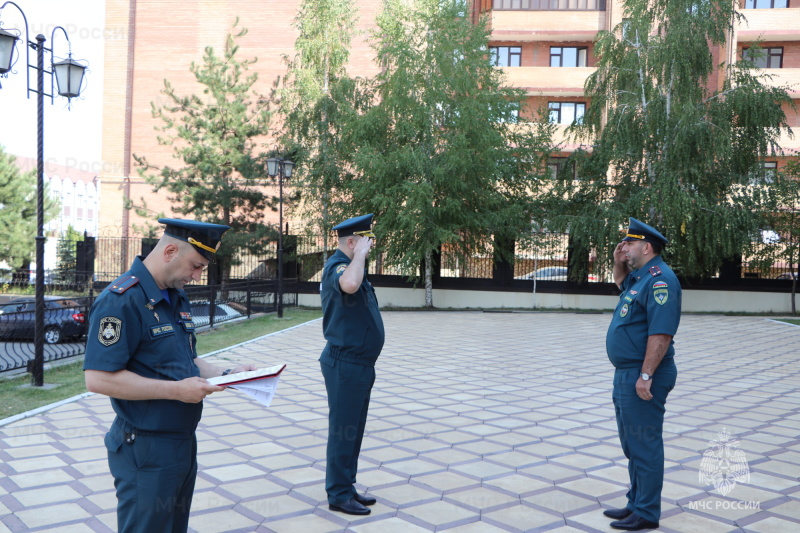 В ходе торжественного построения начальник Главного управления генерал-майор внутренней службы Вячеслав Борисов довел до личного состава приказ Министра МЧС России. В соответствии с этим приказом заместителю начальника Главного управления – начальнику управления надзорной деятельности и профилактической работы Ахмеду Котиеву присвоено очередное специальное звание «полковник внутренней службы».