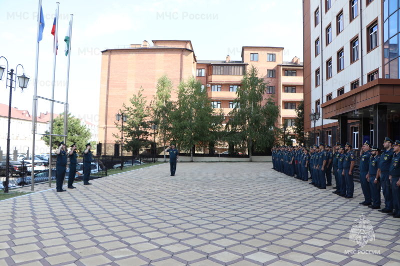 В Главном управлении МЧС России по Республике Ингушетия прошла торжественная церемония строевого смотра личного состава. Мероприятие началось с традиционного ритуала поднятия Государственного флага Российской Федерации под звуки гимна страны.