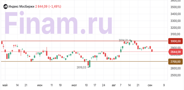 Российский рынок акций во вторник, 2 сентября, продолжил снижение, Индекс МосБиржи фактически вернулся к уровням начала августа. На настроениях инвесторов отрицательно сказались комментарии зампреда Банка России Алексея Заботкина. Представитель ЦБ предупредил, что преждевременное смягчение ДКП может разогнать инфляцию и увеличить бюджетные расходы, поэтому регулятор не давал сигналов к быстрому снижению ставки. Это охладило ожидания по темпам смягчения политики и поддержало «осторожный» тон торгов.