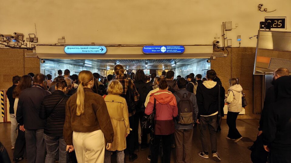 «Такая громадная пробка копится, и люди даже не могут выйти с эскалатора – те, кто спускается вниз», - передает очевидец.