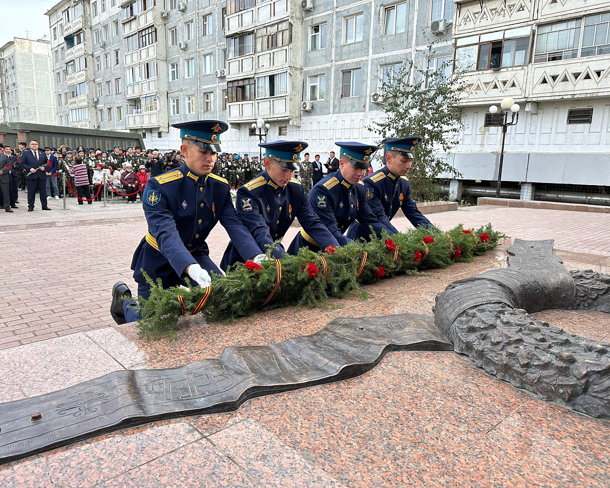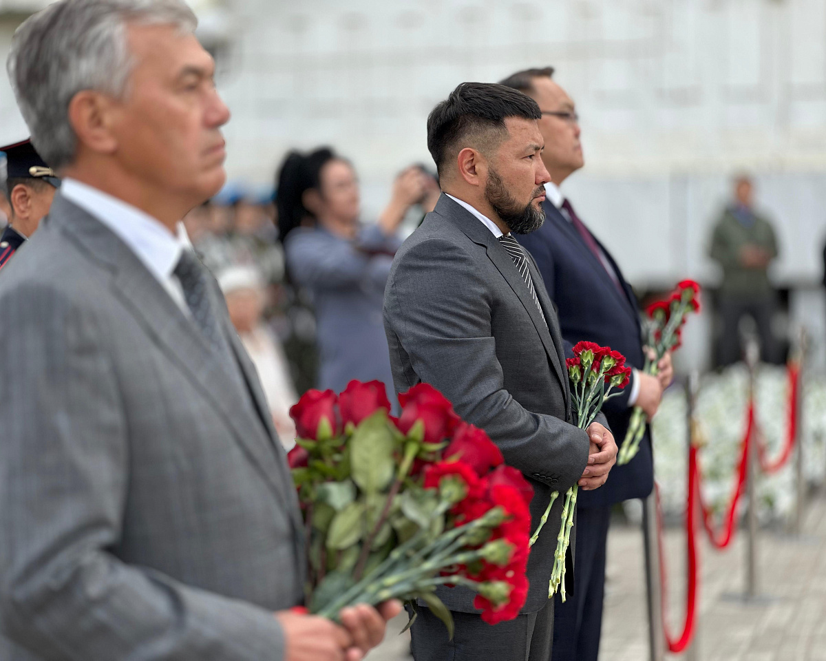 В церемонии возложения цветов в мемориальном комплексе «Солдат Туймаады» в День 80-летия окончания Второй мировой войны и победы над милитаристской Японией приняли участие Глава Республики Саха (Якутия) Айсен Николаев, заместитель Председателя Государственного Собрания (Ил Тумэн) Афанасий Владимиров, глава города Якутска Евгений Григорьев, Председатель Якутской городской Думы Альберт Семенов, члены Правительства Республики Саха (Якутия), народные депутаты Государственного Собрания (Ил Тумэн) Республики Саха (Якутия), депутаты Якутской городской Думы, общественность города Якутска.