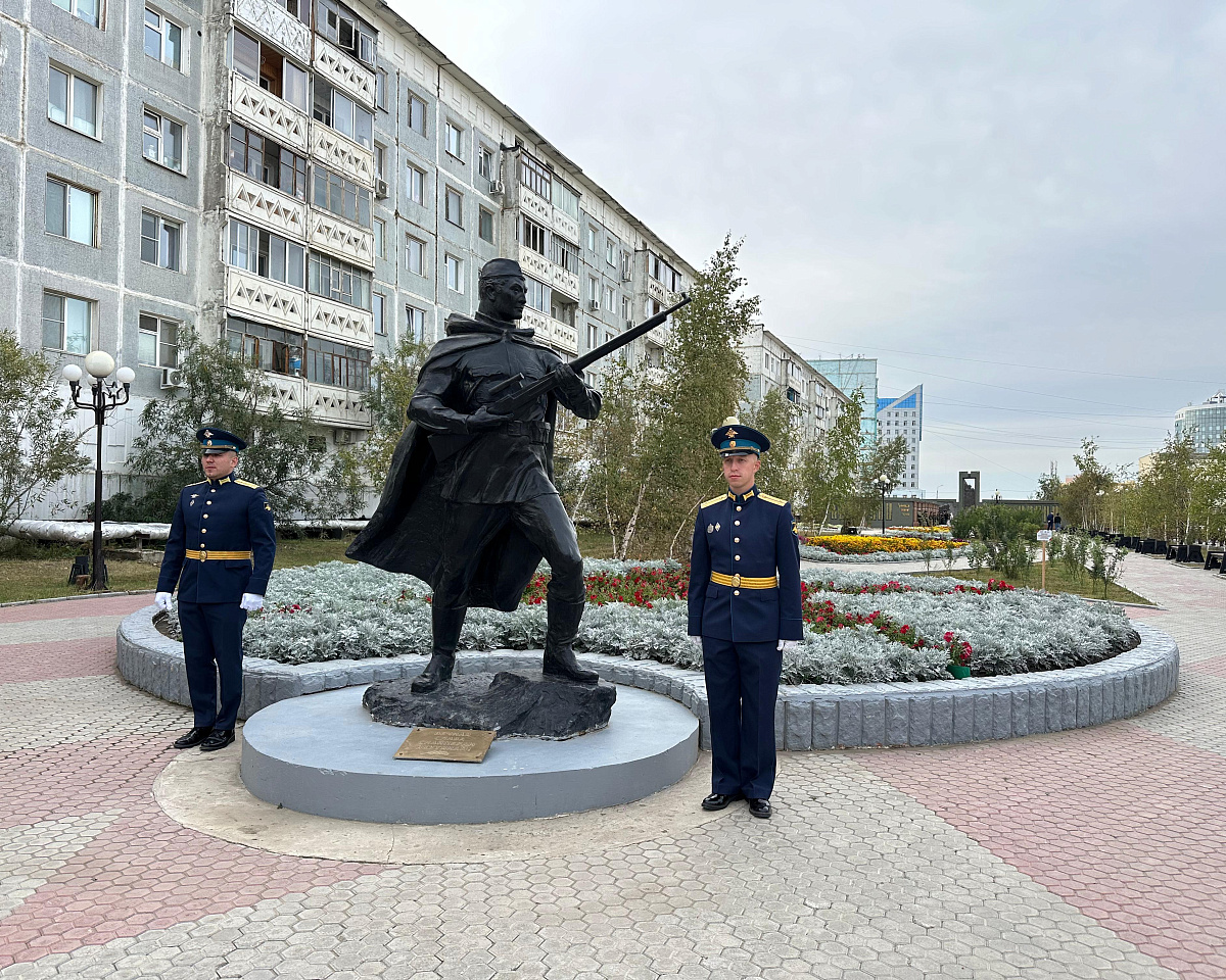 Айсен Николаев напомнил историю создания мемориального комплекса «Солдат Туймаады», воздвигнутого 10 лет назад к 70-летию окончания Второй мировой войны. Он с глубоким почтением назвал это место священным – здесь увековечены имена 20 тысяч якутян, ушедших на фронт из Якутска. Ил Дархан также упомянул присвоение Президентом Владимиром Путиным городам Якутску и Алдану почетного звания «Город трудовой доблести» как заслуженную награду за беспримерный трудовой вклад жителей этих городов в победу над врагом.