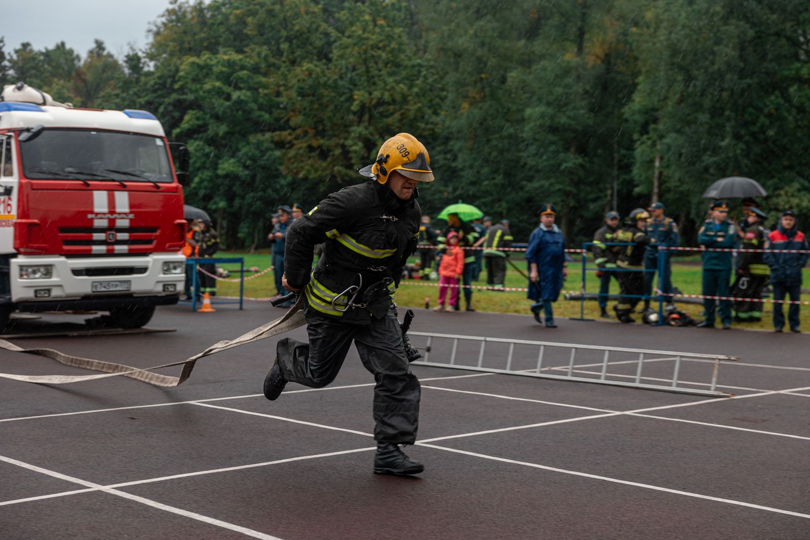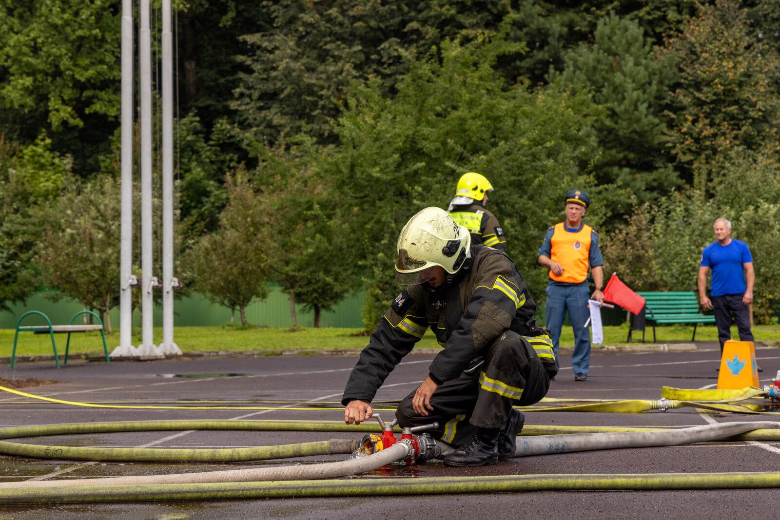 Но скорость – не единственный критерий победы. Судьи предельно внимательно следили за каждым движением: не закреплена рукавная линия задержкой до появления воды из ствола? Плюс 10 драгоценных секунд к итоговому времени. Повреждена боевая одежда или снаряжение во время выполнения боевого развертывания? Еще 5 штрафных секунд. Даже малейшая оплошность в экипировке, например, неправильная высота низа брюк, могла стоить команде пьедестала. В этом году большинство участников прошли дистанцию без ошибок: всего два спортивных коллектива из 22 команд заработали незначительные штрафы.
