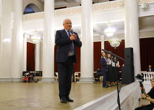 С напутственным словом к гостям обратился ректор СПбГИК, доктор исторических наук, профессор, Заслуженный работник высшей школы РФ Александр Сергеевич Тургаев. В торжественной речи он подчеркнул, что только совместная работа преподавателей и студентов может привести к цели, и главная задача преподавателей помочь талантливым студентам стать успешными.