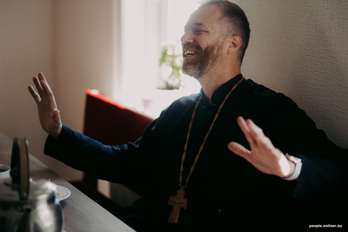 За прошлый год собирать миллионы просмотров на роликах и мелькать в постах больших СМИ для отца Алексея из Витебска стало почти что привычным делом. Он даже удивляется, что тот факт, что священник может быть обычным человеком, иметь чувство юмора и «шарить» в трендах, до сих пор вызывает такую реакцию. Впрочем, найти таких харизматичных, смешных и при этом простых как два рубля действительно сложно. Мы приехали в гости к одному из самых популярных батюшек Беларуси и поговорили с ним о детстве, рок-музыке, трудных подростках, танцах в подряснике и о многом другом. Теперь познакомиться с ним пора и вам.