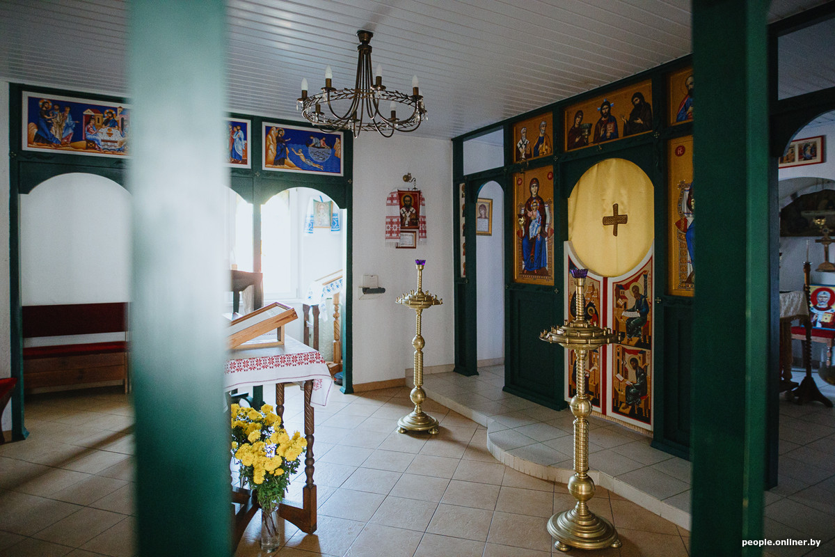 Маленький грекокатолический храм Воскресения Христова окончательно слился бы с частным сектором Витебска, если бы не какие-никакие, но купола — скромные и без позолоты. Внутри храма не так уж и много места — даже непривычно. Говорят, если вдруг на службу придет одновременно человек 30, тут будет уже не протолкнуться и не продохнуть. Без размаха, короче говоря, все как-то по-домашнему или даже по-дачному.