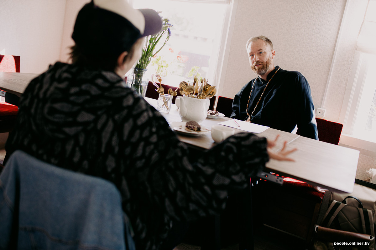 о.Алексей производит впечатление простого, скромного, веселого, но глубокого человека. Даже во время нашего общения он периодически делал какие-то пометки и говорил, что у него возникают идеи, о чем еще можно поговорить с прихожанами. Снова смеемся, что это, по сути, стендап — пусть и не комедия, но наблюдений. У светских и церковных форматов не так уж и много различий.