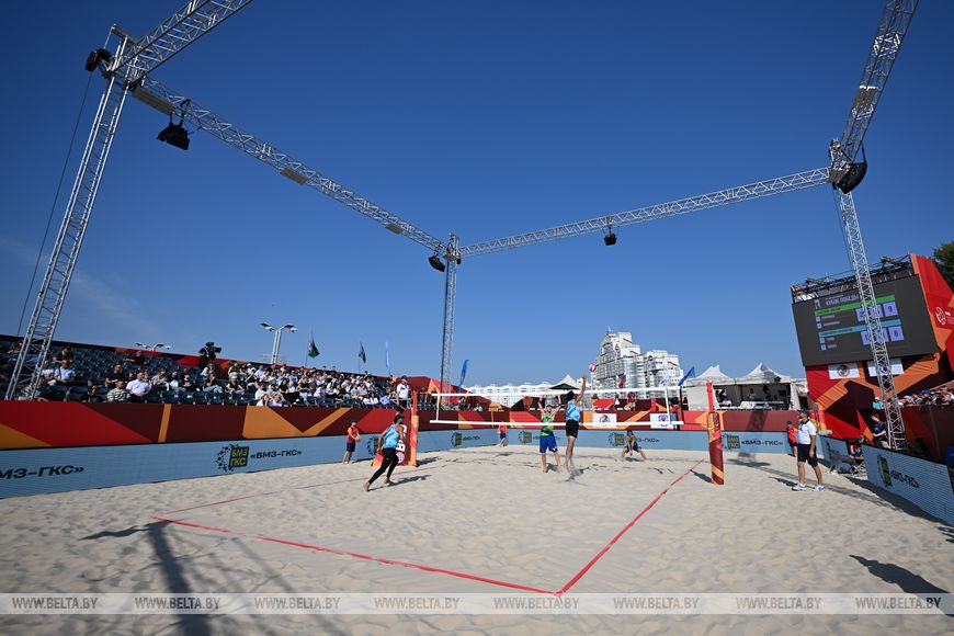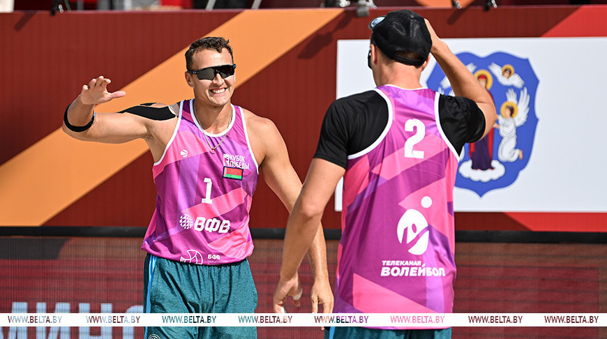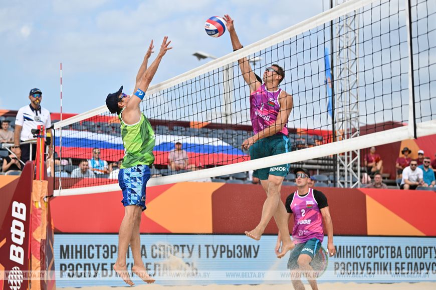 Соревнования с участием лучших волейболистов Беларуси, России, Казахстана и Кубы принимает площадка у Дворца спорта. Первыми соперниками Дедкова и Петрушко в группе А стали Никита Эверт и Илья Щелкунов из петербургского "Зенита", встреча закончилась победой хозяев со счетом 2:0 по сетам (21:12, 21:12). Благодаря этому успеху наши парни вышли в четвертьфинал турнира.