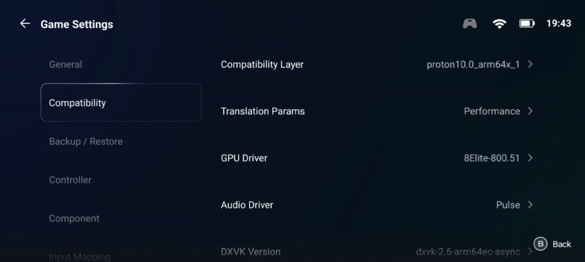 Для Silksong используем GameHub. К сожалению, хотя эмулятор автоматически установит все «нужные» компоненты, на том же POCO F5 без «танцев с бубном» сначала контейнер не запускается, а потом игра жалуется на отсутствие драйверов и DirectX 11. Поэтому ниже вы найдёте настройки.