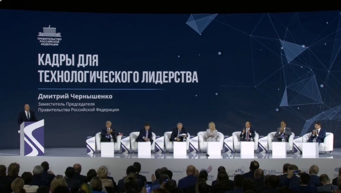 В тот же день вице-президент ТПП РФ Дмитрий Курочкин принял участие в основном пленарном заседании «Подготовка кадров для обеспечения технологического лидерства», которое модерировал заместитель председателя Правительства Российской Федерации Дмитрий Чернышенко.