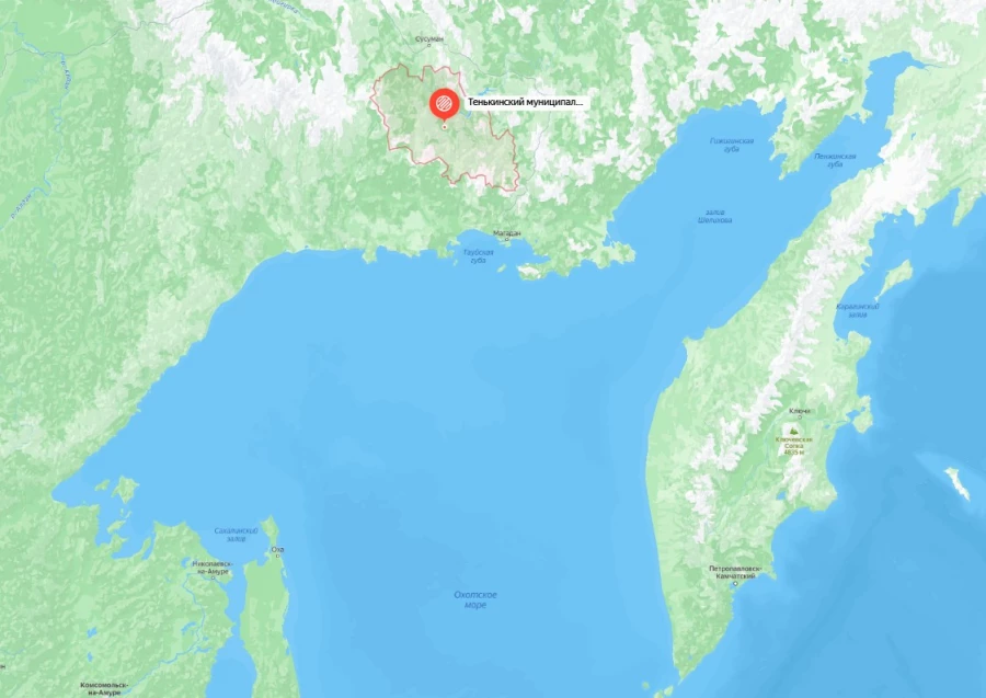 Дегдеканское рудное поле расположено на территории Тенькинского муниципального округа, в 460 км к северо-западу от Магадана. Изображение: Яндекс Карты.