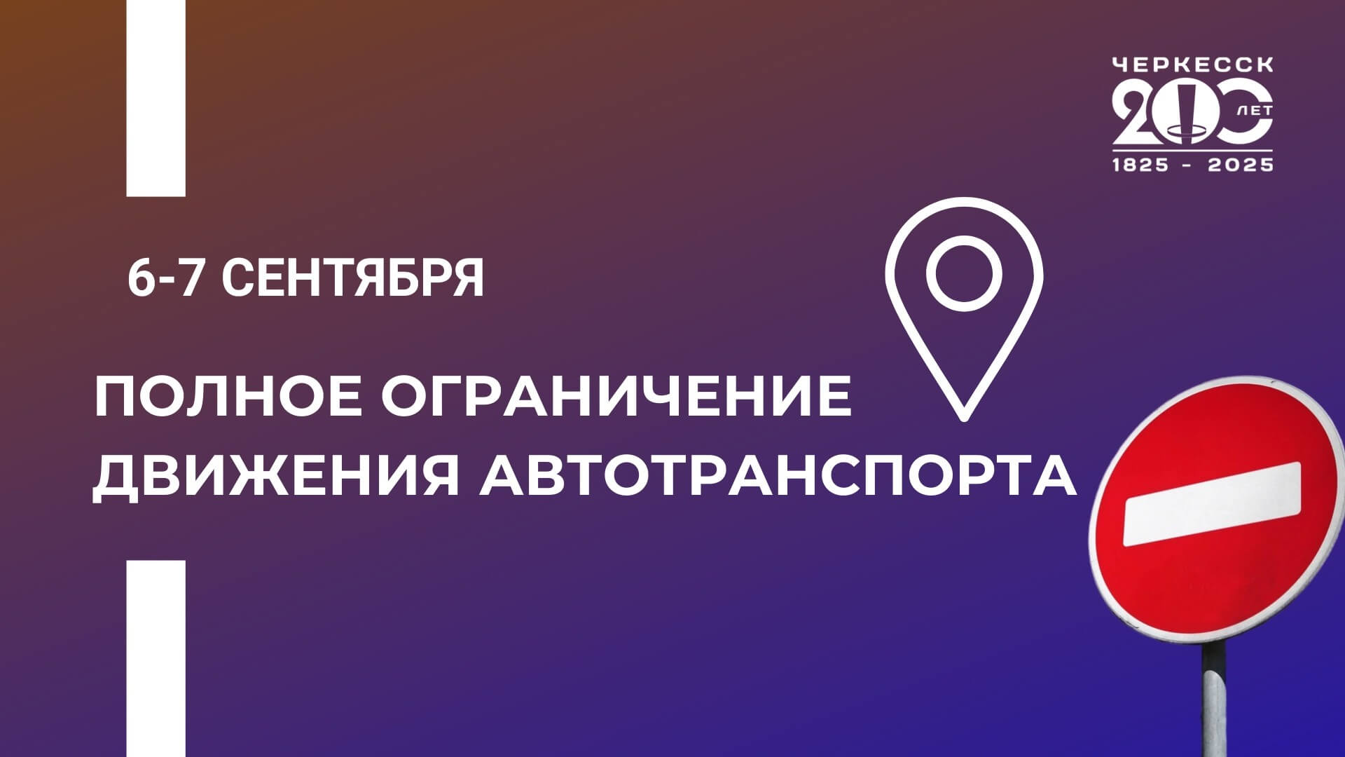 В связи с проведением праздничных мероприятий, приуроченных к Дню Республики и 200-летию Черкесска, 6 и 7 сентября на некоторых участках городских дорог будет введено ограничение движения для всех видов транспорта.