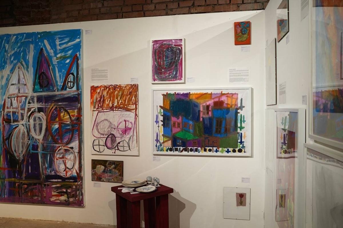 Помимо «Простых вещей», на выставке представлены работы художников ещё двух студий арт-терапии — из больницы на Пряжке и инклюзивного объединения «Глеб Торгачкин & Жэка».