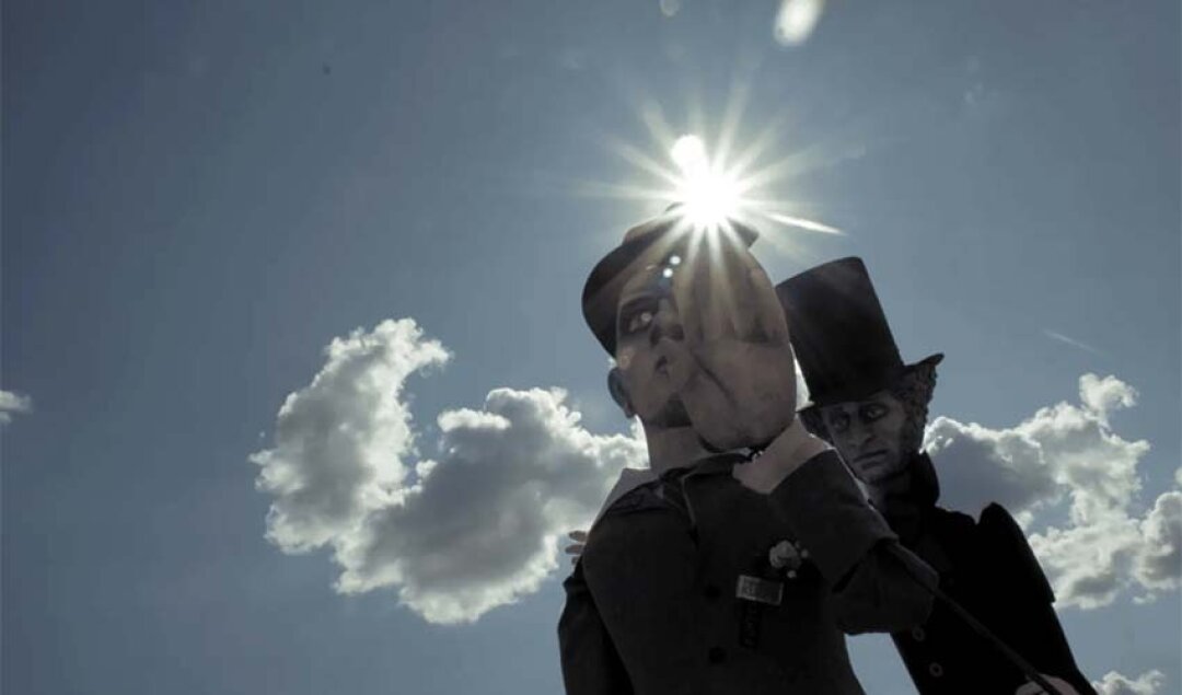 Это была довольно громкая история. По их словам, они проснулись знаменитыми, после того, как просто вечерком погуляли по улице с этими «великанцами» — потестили их, что называется. И вот спустя 10 лет они решили обновить кукол. И подумали: «В прошлый раз мы так здорово все это делали, но ничего не снимали. Давайте-ка найдем режиссера». И Миша Васильев, человек очень предприимчивый, с шилом в одном месте (в хорошем смысле), быстро сориентировался. Написал своему знакомому, они в каком-то телеграм-канале с большой аудиторией опубликовали пост о поисках, скинули свои ролики. И мы с Сережей Кальварским, моим однокурсником у Александра Николаевича Сокурова и дорогим другом, можно сказать, прошли этот конкурс. Более того, потом оказалось, что мы уже знакомы с Мишей. И взялись делать фильм: я как режиссер, Сережа как второй оператор, который помог поставить несколько сцен и много чего придумал. За что я ему очень благодарен.