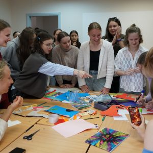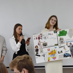 Больше всего мне понравилась защита нашей стенгазеты. Было очень интересно открываться и узнавать своих однокурсников. Это было незабываемо. Мы поделились на две группы: первая рисует, вторая готовит текст для выступления. Было очень смешно и атмосферно.