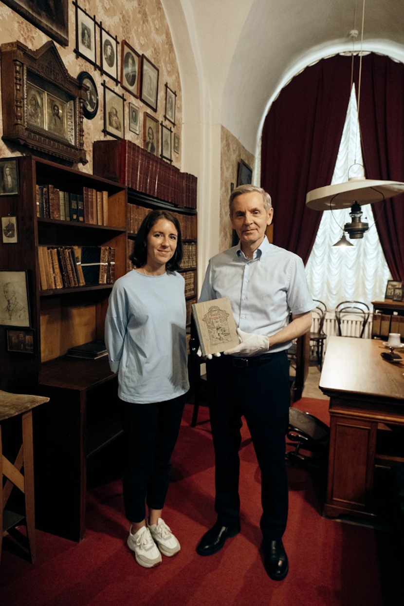 — Конечно. Никакие самые замечательные книги не заменят впечатлений, которые я получил в бывшей университетской квартире профессора химии, где он жил и работал 24 года. В его кабинете на письменном столе лежат оригинальные документы и вещи, а на полках находятся научные приборы того времени. Уникальная личная библиотека Менделеева состоит из сотен книг, на полях многих из них его собственноручные записи и пометки. В одной из комнат квартиры на стене висят портреты родителей Дмитрия Ивановича, Петра Ершова и фотография здания Тобольской мужской гимназии, в которой он учился. Интересны материалы, связанные с созданием первого в мире арктического ледокола «Ермак» при участии учёного. Выбор названия был не случаен для родившегося в Тобольске Менделеева. Десятки его работ посвящены исследованию Северного Ледовитого океана, Северного морского пути и освоению Крайнего Севера. Не менее любопытны материалы о полёте Менделеева на воздушном шаре «Русский» на высоте 3800 метров для наблюдения полного солнечного затмения и проведения аэрологических измерений. Среди экспонатов библиотеки не могла не привлечь моё внимание сказка Петра Ершова «Конёк-Горбунок» издания 1902 года. Два наших выдающихся земляка состояли в родственных отношениях после женитьбы Менделеева на приёмной дочери Ершова. В музее хранятся письма поэта. Второй музей, расположенный во Всероссийском научно-исследовательском институте метрологии имени Менделеева, состоит из двух частей: рабочего кабинета Дмитрия Ивановича в бывшем здании Главной палаты мер и весов, которую он возглавлял с 1893 по 1907 годы, и служебной квартиры в рядом стоящем доме для сотрудников. В ней находятся экспозиции «Российская и метрическая системы мер» и домашняя химическая лаборатория. В музее представлены оригинальные вещи, принадлежавшие Менделееву, а также эталонные меры массы, объёма, длины, средств измерения температуры, давления, времени и другие. Рядом с кабинетом находится бюст великого учёного и список из более 100 академий и научных обществ всего мира, почётным членом которых он был избран.