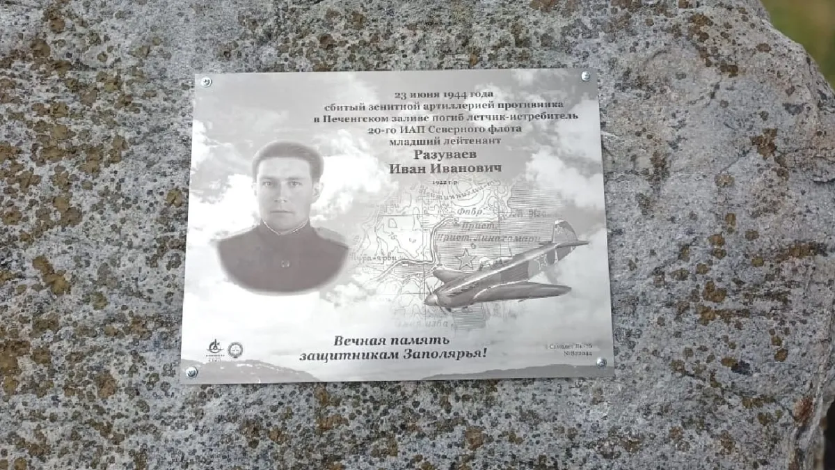 Поисковики Мурманской области установили в Лиинахамари памятную доску в честь подвига героя — летчика истребителя Северного Флота Ивана Разуваева. Об этом сообщили в паблике «Лиинахамари | Спутник | Луостари | Корзуново».