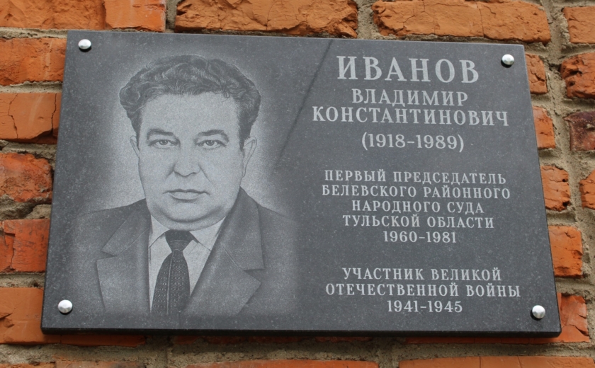 В Белеве увековечили память Владимира Константиновича Иванова — первого председателя Белевского районного народного суда и участника Великой Отечественной войны. Мемориальная доска появилась на здании постоянного судебного присутствия Суворовского межрайонного суда Тульской области.