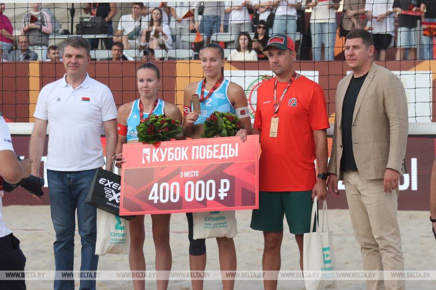 6 сентября, Минск /Корр. БЕЛТА/. Белоруски Надежда Тишкова и Ольга Абраменко заняли четвертое место на международном турнире по пляжному волейболу "Кубок Победы" в Минске, сообщает корреспондент БЕЛТА.