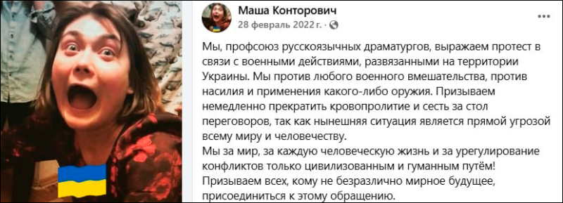 Если "мы, конечно, за мир", то почему же на аватарке флаг Украины? Скриншот: соцсети Конторович