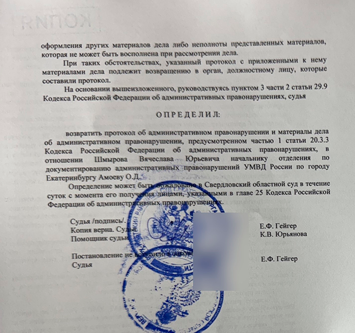 Судя по всему, полиция не вполне качественно подготовила протокол для передачи в суд. Но это вскрылось уже постфактум, и адвокат Шмырова Георгий Краснов умело обнаружил этот недочёт.