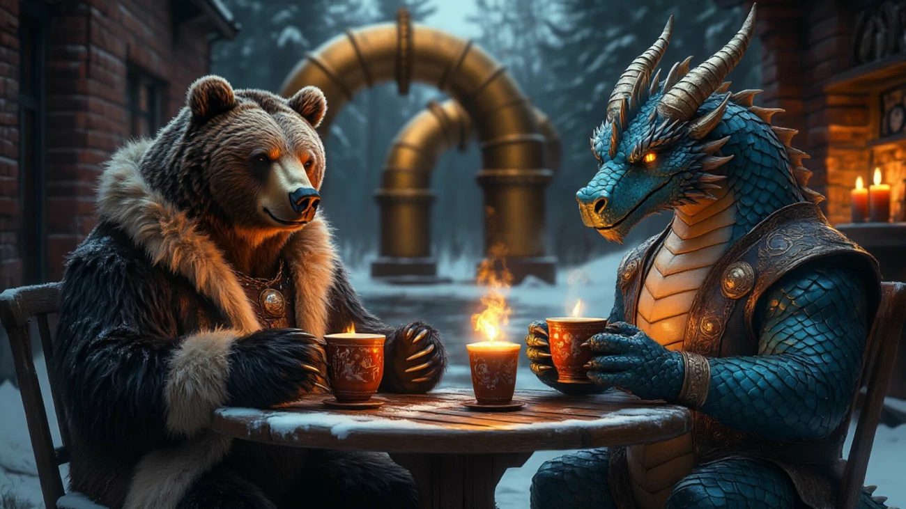 Медведь и дракон пьют чай / Изображение сгенерировано YandexGPT 5 Pro / amic.ru