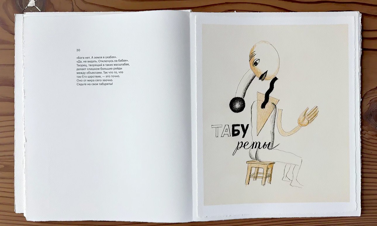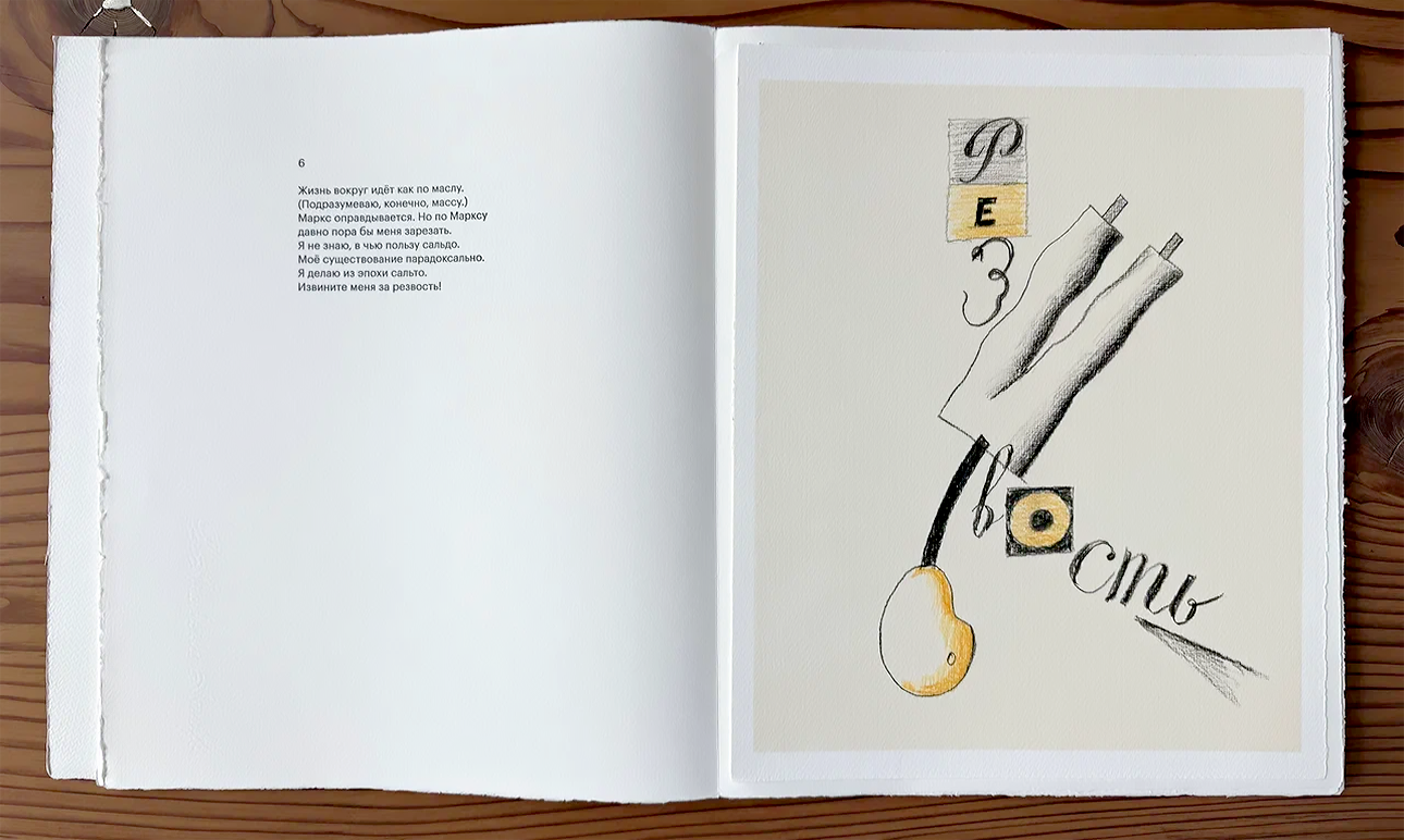Виктор Пивоваров. «Речь о пролитом молоке». Разворот из книги художника. 2025.