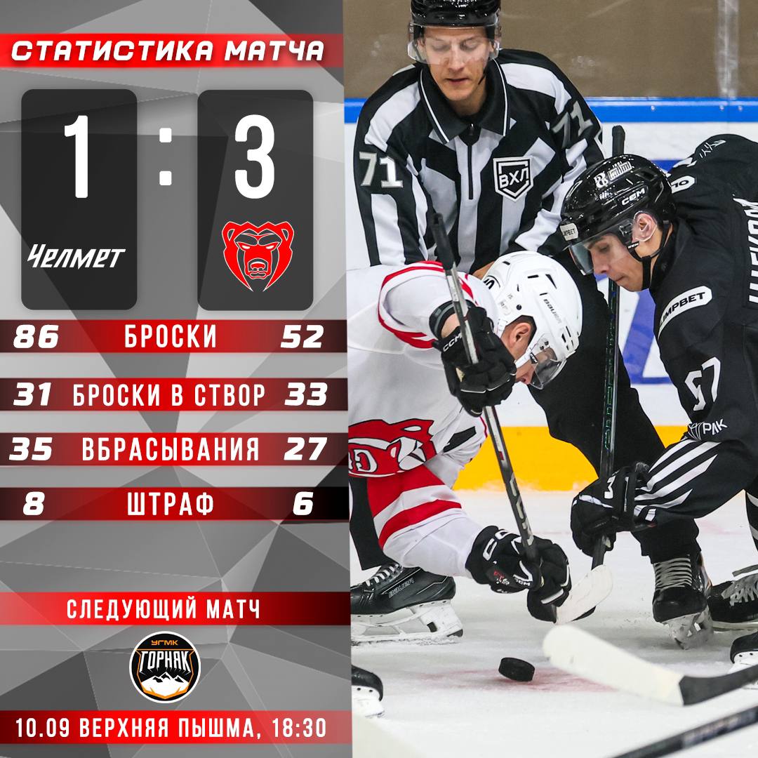 Пермский хоккейный клуб «Молот» провёл выездной матч против ХК «Челмет» из Челябинска. Матч на льду соперника закончился со счётом 3:1 в пользу пермяков. Об этом сообщает пресс-служба клуба в соцсетях.