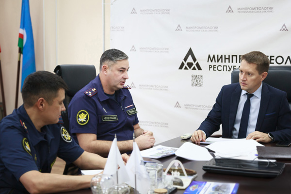 На рабочей встрече Станислава Тетерина с Министром промышленности и геологии Республики Саха (Якутия) Максимом Терещенко обсуждены вопросы изготовления в исправительных учреждениях ящиков керновых и пошива мешков геологических, используемых для хранения и транспортировки проб, а также средств индивидуальной защиты.