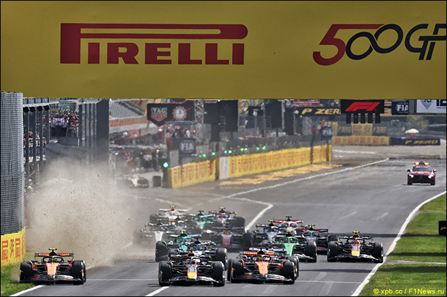 Первые круги были зрелищными. Вылетев с трассы и оказавшись на траве на подходе к первому повороту, Норрис не сбавил скорость и занял внутренний радиус. Макс был вынужден выехать на резервную дорожку, срезал апекс второго поворота и вышел в лидеры. Команда вполне справедливо попросила его вернуть позицию Норрису, что подчеркнуло их уверенность в скорости машины в тот день.