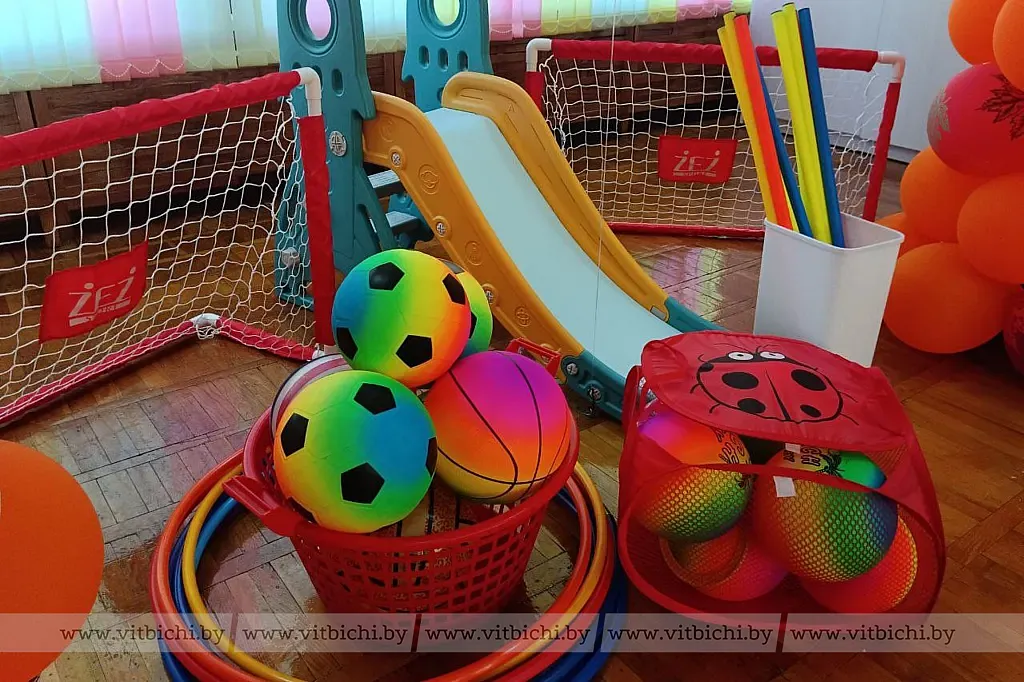 – В следующем году дети из старшей группы станут первоклассниками. Чтобы они были лучше подготовлены физически, решили подарить им необходимые спортивные принадлежности. Связались с руководством садика и посоветовались, что лучше приобрести. В итоге привезли сюда: горку, небольшие футбольные ворота, мячи, обручи и гимнастические палки, – рассказала заместитель председателя Первомайской РО ОО «Белая Русь» города Витебска Елена Мешкова.