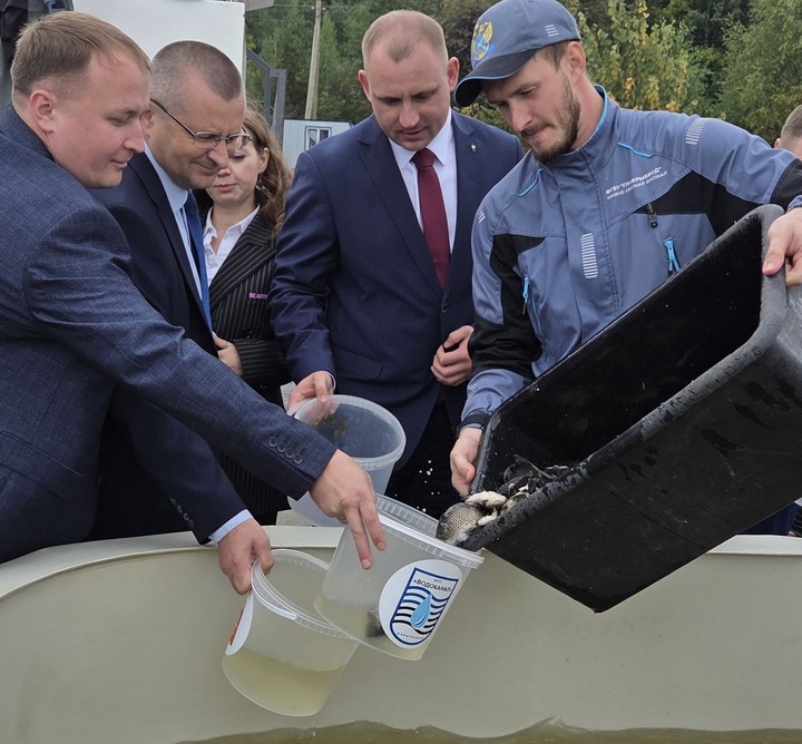 Завершился наш пресс-тур на берегу Верх-Нейвинского водохранилища, где в этот момент проходила торжественная церемония запуска в воду мальков рыб промысловых пород: белого амура (10 тысяч мальков) и сазана (25 тысяч мальков).